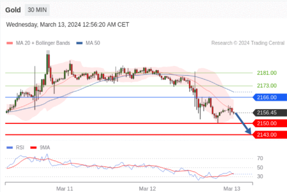 在 2166.00 之下,看跌,目标价位为 2150.00 ,然后为 2143.00 。
