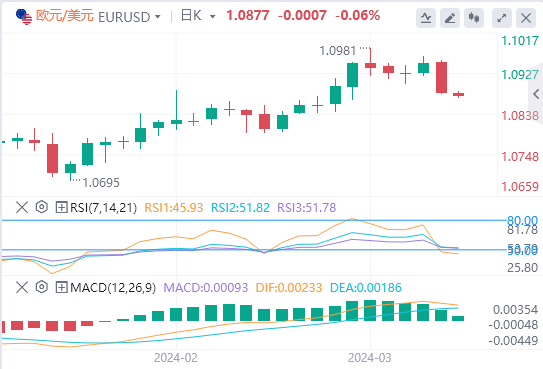 通胀相关数据方面,美国3月密歇根大学1年通胀预期初值预计为3.1%,前值为3.0%;美国3月密歇根大学5-10年通胀预期初值预计为3.0%,前值为2.9%。