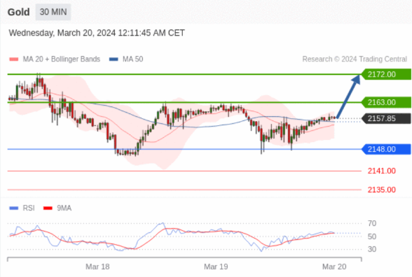 在 2148.00 之上,看涨,目标价位为 2163.00 ,然后为 2172.00 。