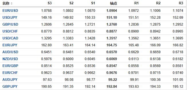日元:美元/日元周三上涨,收报151.24,涨幅0.26%。技术面上,汇价上行的初步阻力位于151.80,进一步阻力位于152.35,关键阻力位于152.89;汇价下行的初步支撑位于150.71,进一步支撑位于150.17,更关键支撑位于149.62。