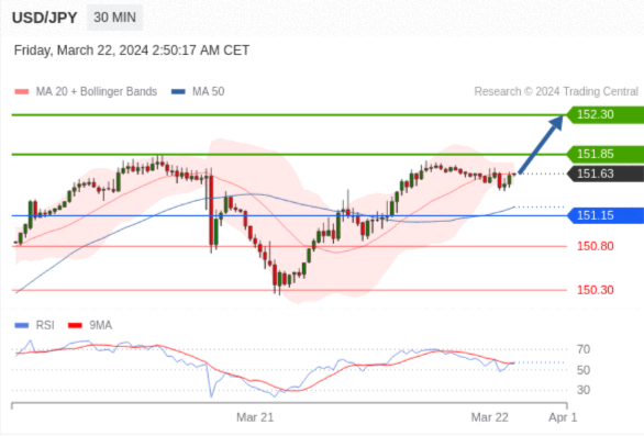ÔÚ 151.15 Ö®ÉÏ£¬¿´ÕÇ£¬Ä¿±ê¼ÛλΪ 151.85 £¬È»ºóΪ 152.30 ¡£