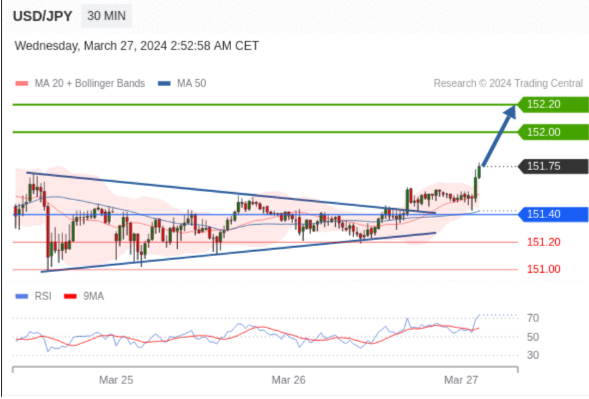 ÔÚ 151.40 Ö®ÉÏ£¬¿´ÕÇ£¬Ä¿±ê¼ÛλΪ 152.00 £¬È»ºóΪ 152.20 ¡£