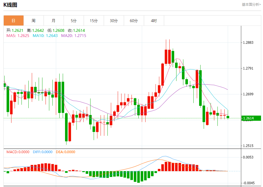 汇价高见1.2642,低见1.2608。上一交易日,汇价收于1.2624。