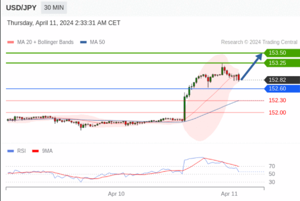 ÔÚ 152.60 Ö®ÉÏ£¬¿´ÕÇ£¬Ä¿±ê¼ÛλΪ 153.25 £¬È»ºóΪ 153.50 ¡£