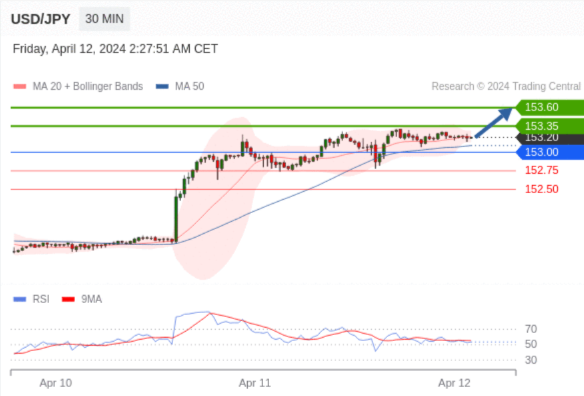 ÔÚ 153.00 Ö®ÉÏ£¬¿´ÕÇ£¬Ä¿±ê¼ÛλΪ 153.35 £¬È»ºóΪ 153.60 ¡£