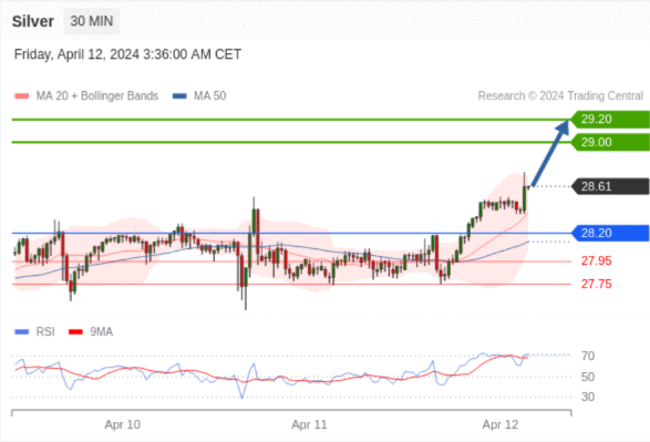 ÔÚ 28.20 Ö®ÉÏ£¬¿´ÕÇ£¬Ä¿±ê¼ÛλΪ 29.00 £¬È»ºóΪ 29.20 ¡£