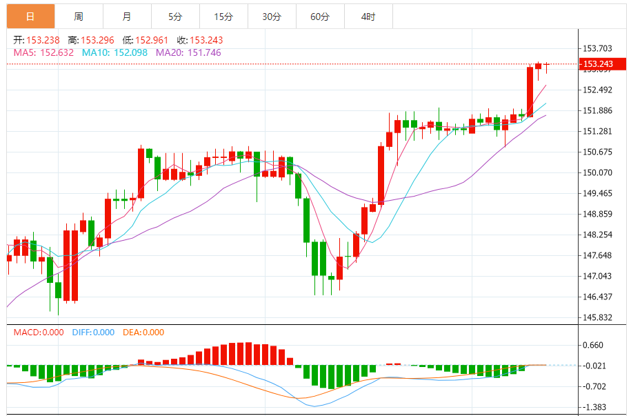 支撑位:153.00 153.07 153.14