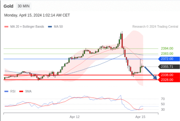 在 2372.00 之下,看跌,目标价位为 2338.00 ,然后为 2328.00 。