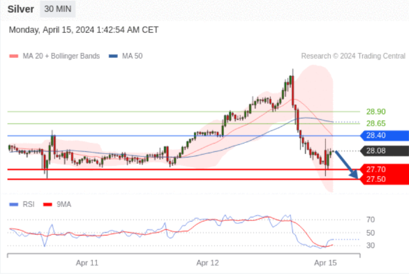 在 28.40 之下,看跌,目标价位为 27.70 ,然后为 27.50 。
