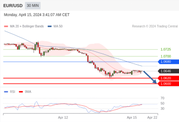 在 1.0680 之下,看跌,目标价位为 1.0620 ,然后为 1.0600 。
