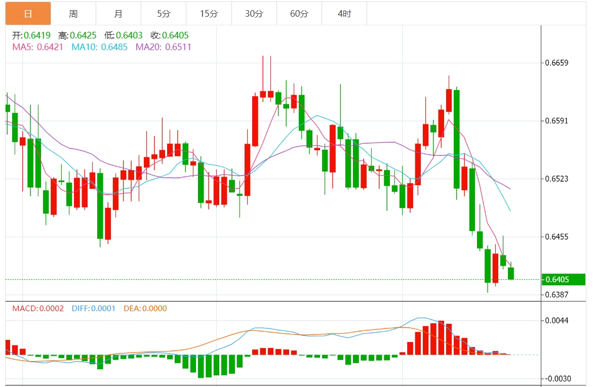 技术分析:澳元跌破0.6400心理水平
