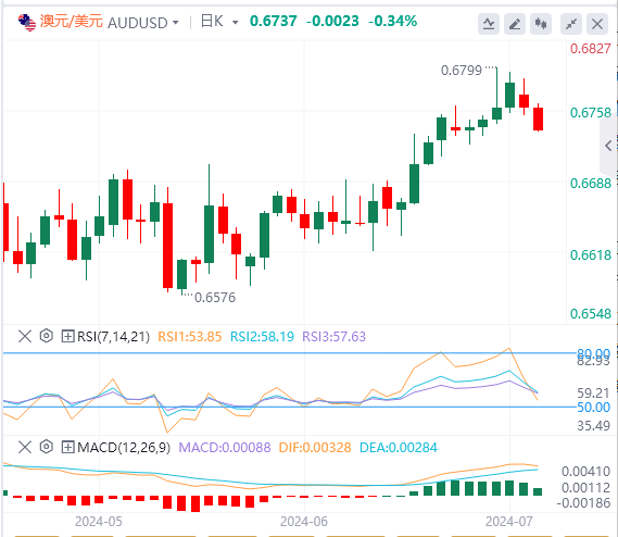 澳元/美元从0.68附近的水平回落,总的来说,0.68-0.67(澳元/美元)的区间可能会持续一段时间。