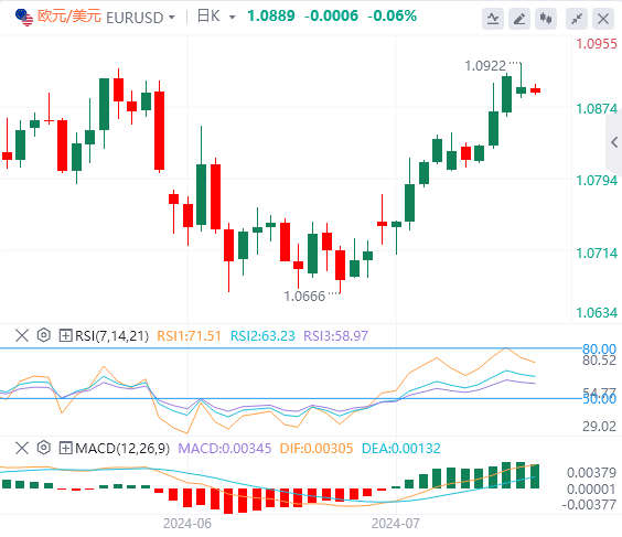 周一,美元指数小幅上涨,枪击事件发生后,投资者增加了特朗普胜选的可能性。美联储主席鲍威尔的鸽派言论一度打击美元,但影响较为短暂。