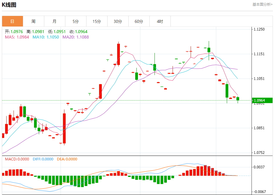 汇价高见1.0981,低见1.0951。上一交易日,汇价收于1.0980。