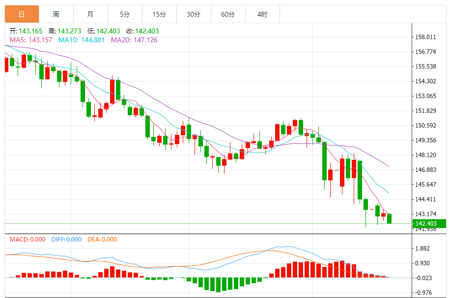 周三(4月16日),美元/日元下跌142.404,暂报142.400,跌幅0.58%。