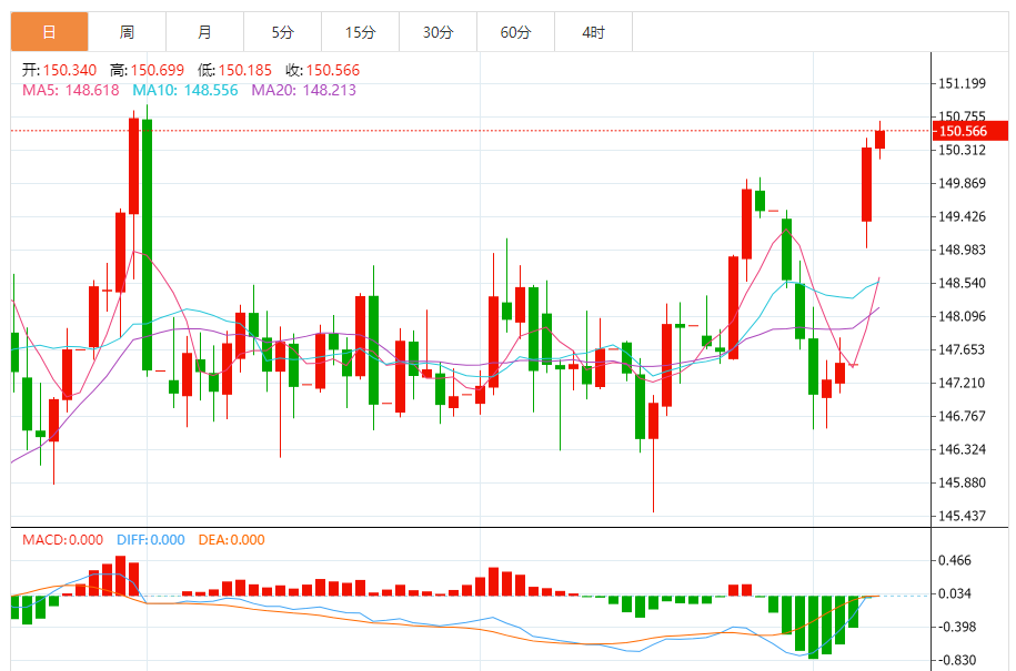 周二(10月7日),美元/日元上涨150.593,暂报150.584,涨幅0.16%。