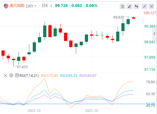 美元指数进一步上涨,只要保持在99.50-99.0上方交易,那么涨势可能延伸向100.50-101.00。