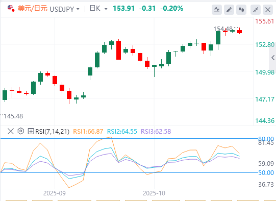 美元/日元目前在154上方保持稳定。只要154附近的阻力转支撑位能够守住,一旦确认突破155,那么美元/日元就有机会进一步升向156,甚至是158。