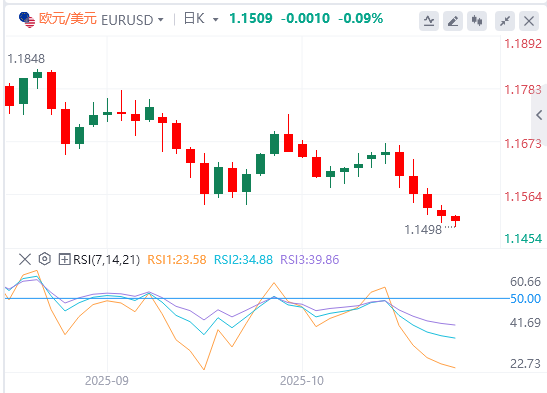 欧元/美元正在缓慢走低,只要维持在1.16下方,那么1.14的目标位可能会被测试。