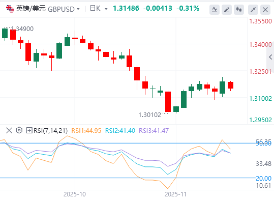 英镑仍承压,因为弱于预期的经济数据强化了人们对英国央行(BoE)12月降息的预期。英国经济第三季度仅小幅增长,而9月份GDP环比下降。