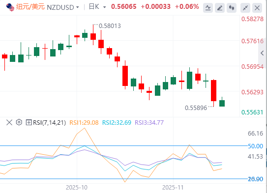 另一方面,跌破0.5600整数并随后突破下降楔形支撑(约0.5570-0.5565区间),将成为看空交易者的新触发点。纽元/美元汇率随后可能加速下跌,跌破0.5500心理关口,即4月达到的多年低点,延续近四个月的下跌趋势。