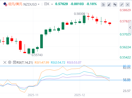 12月18日,纽元/美元连续第二个交易日持续下跌,周四欧洲早盘交易约0.5760。随着纽元(NZD)承受压力,尽管数据显示经济增长强于预期,货币对仍走弱。