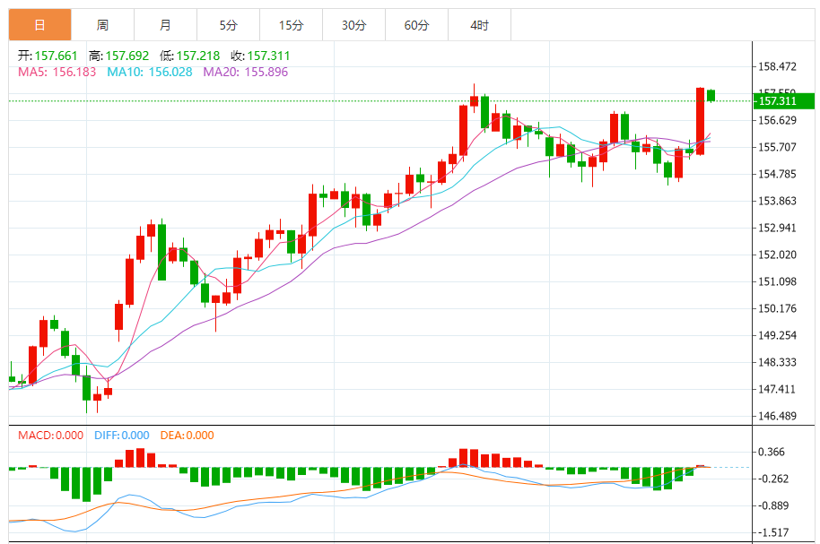 周一(12月22日),美元/日元下跌157.343,暂报157.334,跌幅0.26%。
