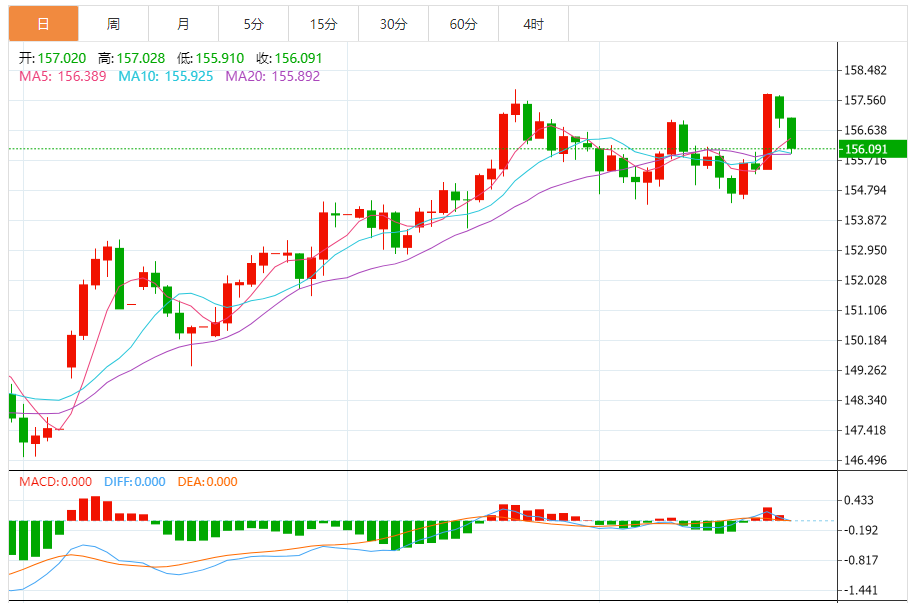 Öܶþ£¨12ÔÂ23ÈÕ£©£¬ÃÀÔª/ÈÕԪϵø156.111£¬Ôݱ¨156.073£¬µø·ù0.60%¡£