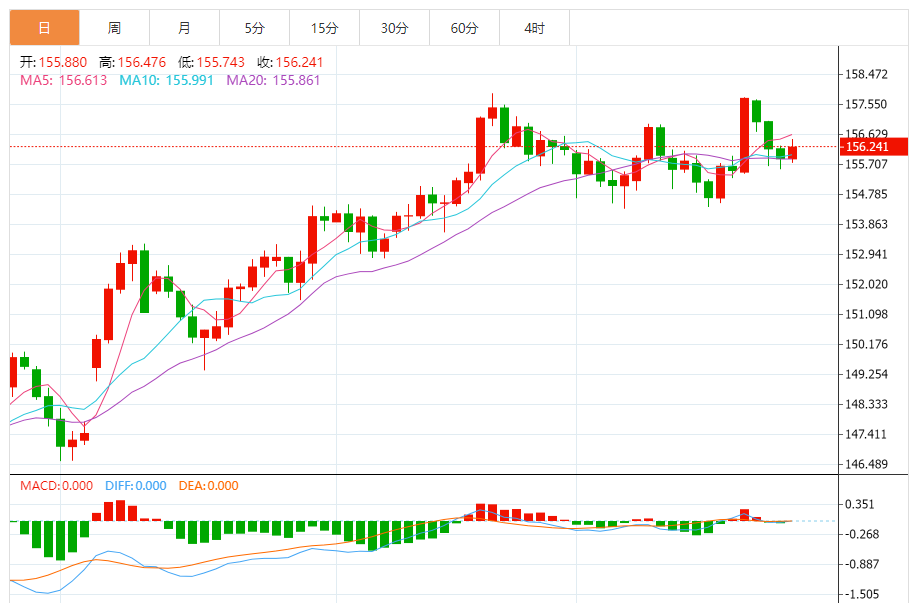 周五(12月26日),美元/日元上涨156.247,暂报156.218,涨幅0.22%。