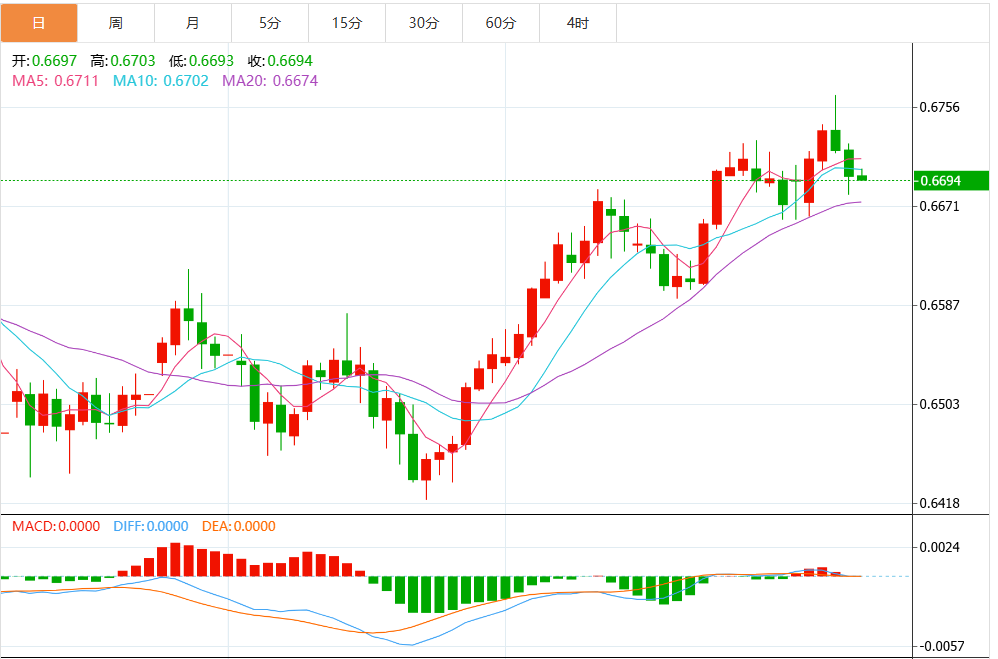 技术分析:澳元反弹至上升通道,接近0.6700