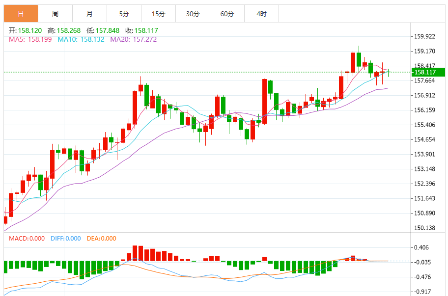 周三(1月21日),美元/日元下跌158.142,暂报158.114,跌幅0.01%。