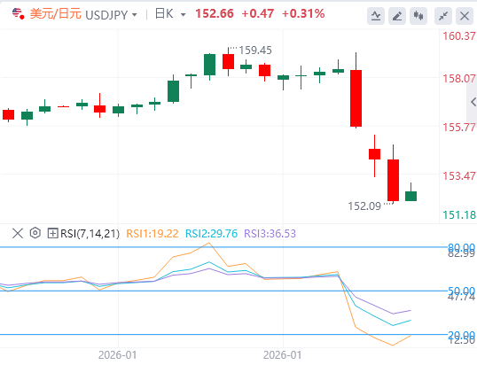 美元/日元在触及152附近的支撑位后反弹。只要该支撑位有效,短期内美元/日元仍有可能反弹向156。