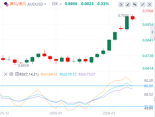 澳元/美元一度上涨至0.7022的高位,略高于我们设定的0.70目标位,随后回落。若跌破0.70,则可能修正性回落向0.68。只有持续突破0.70,才能将焦点转移至0.72。