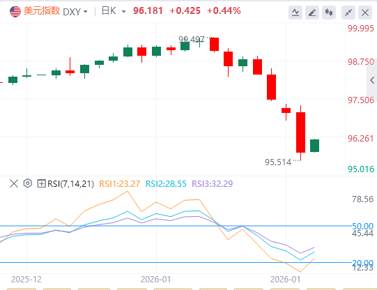 追踪美元兑六种货币表现的美元指数(DXY)周二收盘暴跌1.32%,报95.76。
