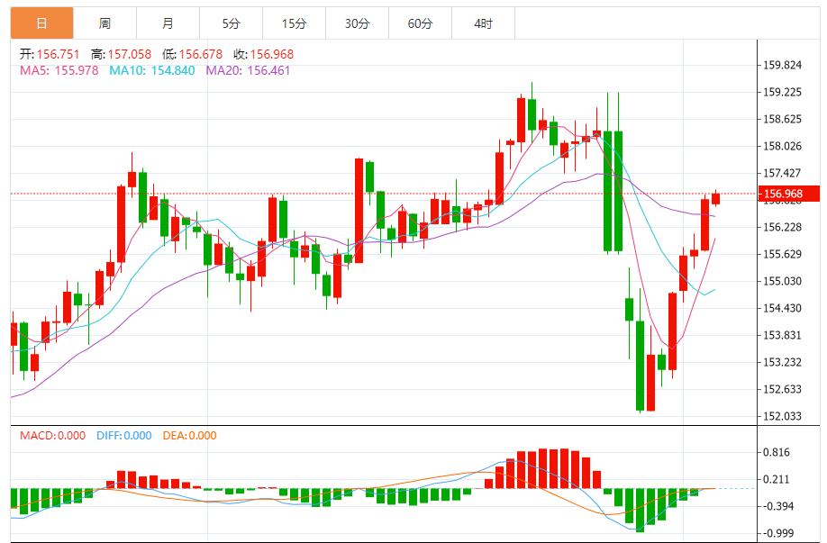 阻力位:157.04 157.10 157.21