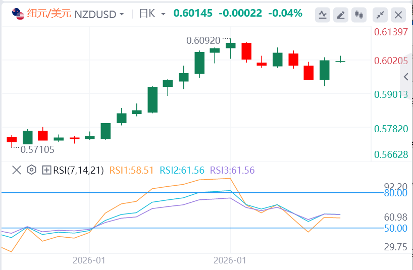 2月9日,纽元/美元连续第二个交易日上涨,周一欧洲时段交易约0.6020。随着美元(USD)走弱,交易员们在关键经济数据即将公布、部分政府关门推迟前采取谨慎态度,货币对价格上涨。
