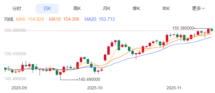 周五(11月14日),美元/日元上涨154.550,暂报154.538,涨幅0.02%。 市场基本面分析 10月会议纪要释放12月加息可能性,内部存在政策分歧 11月10日,日本央行发布10月30日的货币政策会议纪要。此次会议以7票赞成、2票反对的结果维持0.5%的政策利率不变,这也是植田和男连续第二次会议遭遇两名委员