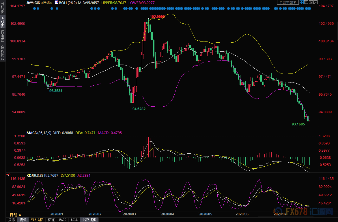 美联储利率决议后,美元指数一度跌至93.16,为2018年5月以来新低,美联储重申宽松政策,并对经济活动和就业仍远低于年初的水平感到担忧,这令美元承压。