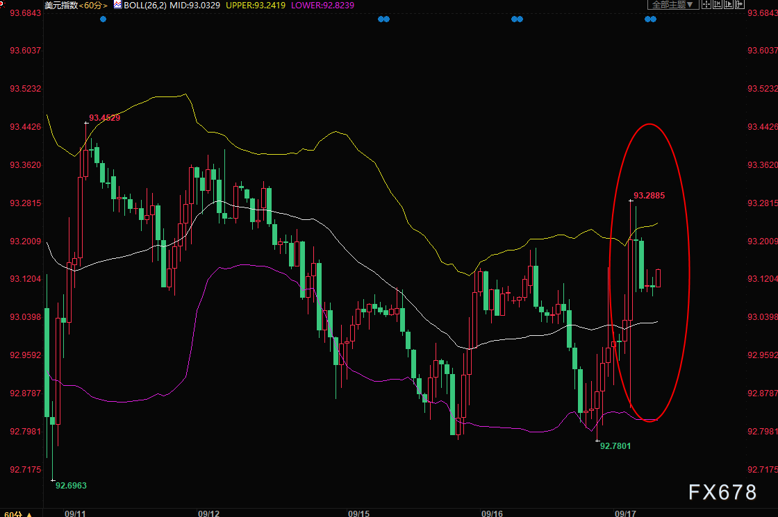 ① 在新的经济预测中,美联储政策制定者的预期中值为今年经济将萎缩3.7%,强于6月份预计的萎缩6.5%。这给美元提供了一定的上涨动能,利率决议后,美元指数震荡微涨,最高曾触及93.28位置,目前交投于93.13附近。