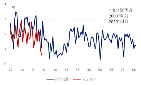 相比次贷危机这次新冠疫情所带来的经济衰退幅度更大中国GDP增速在一季度同比下降6.8%美国GDP在2020年2季度出现了超过30%的环比下滑这远高于两国在次贷危机期间任意一个季度的环比下滑。但是这一轮的经济衰退持续时间较短次贷危机后美国以及其他主要经济体陷入了数个季度的衰退。与之相对中国经济在今年1季度出现大幅下滑后在2季度显着回升以美国为代表的发达国家在放宽社交隔离政策后国民经济在3季度也开始复苏。