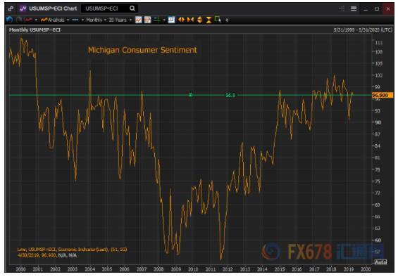 美国消费者的乐观情绪已经明显改善,4月密歇根消费者信心指数在过去两年的均值为96.9,为20年的最佳水平,同时从市场预期看,周五公布的5月数据预计将进一步上调至97.5。
