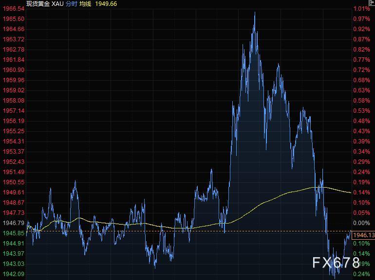 金价周四上演倒V反转,欧洲央行决议后,现货黄金大涨1%,创逾一周新高至1966.54美元/盎司,不过随着美股大跌、美元指数较日低上扬逾70点攀升至93.45,金价持续走低,尾盘回吐日内全部涨幅;美元走强令金价承压,此外美股大跌,黄金持有者因流动性需求出售黄金。