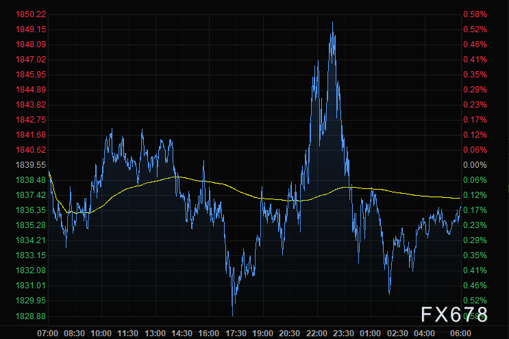 金价周四反弹受阻,收跌0.16%,收报1836.57美元/盎司,因未能大幅突破每盎司1850美元的阻力位,引发技术性卖盘,而疫苗带动的整体乐观情绪持续,也促使投资者忽视美国疲弱的就业数据。