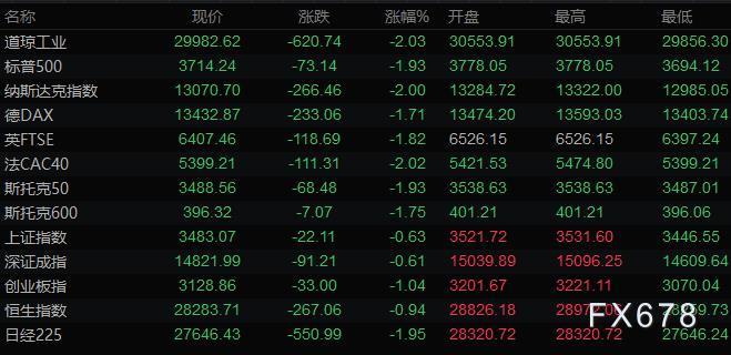 美股追随全球股市跌势,标普500指数下挫近2%,跌破去年收盘点位,创下3个月来最大单周跌幅。全球股市也创下10月末以来最大下跌,部分原因是短线交易者大举购买被做空股票,引发对冲基金阵脚大乱、交易平台承压。