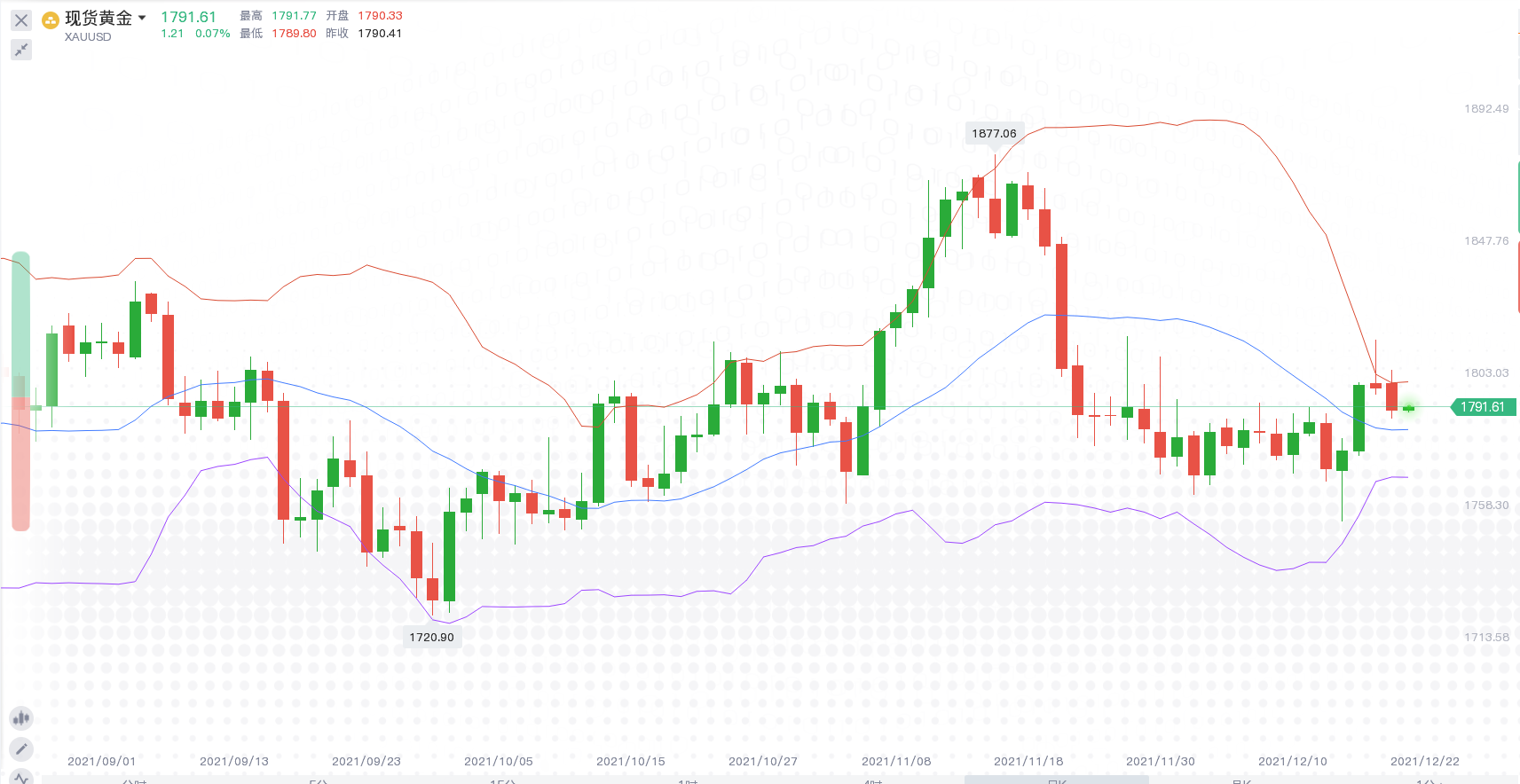 周一现货黄金持续下行,向下触及1790美元,收跌0.51%,报1790.97美元/盎司;现货白银收跌0.41%,报22.27美元/盎司。
