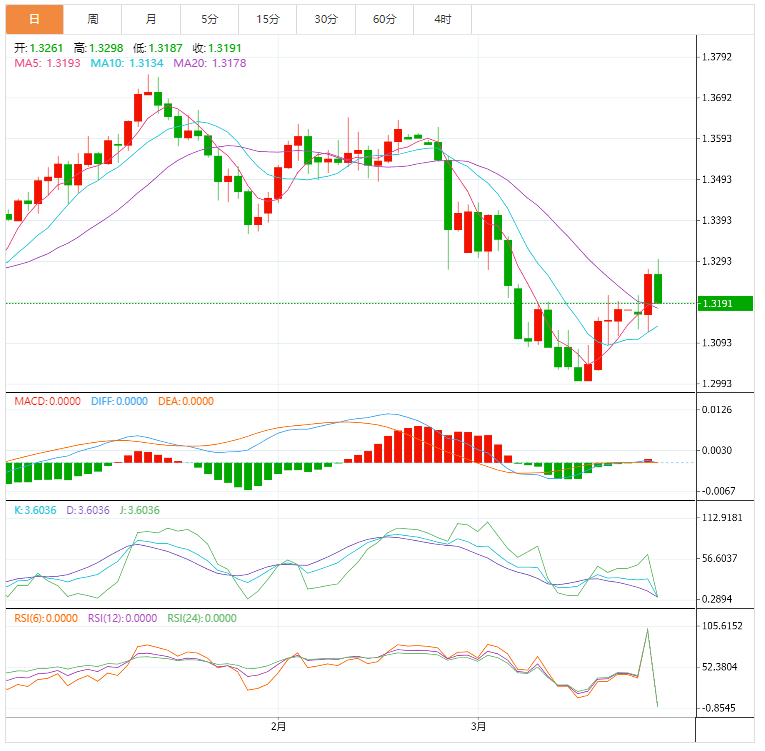 欧元/美元:截止北京时间20:00,欧元/美元下跌,现报1.0986,跌幅0.39%。纽市盘前,欧元兑美元交投于1.1000附近的窄幅区间内。在地缘政治担忧持续以及目前美联储将大举收紧货币政策的预期上升的背景下,欧元兑美元依然承压且承受新的抛售压力。欧盟委员会将公布欧元区3月消费者信心指数初值。北美时段,美联储主席鲍威尔和旧金山联储M.Daly将发表讲话,同时美国将公布上周抵押贷款和新屋销售。目前欧元兑美元现货价格下跌0.11%报1.1015,下一阻力位于1.1137(3月17日高点),然后为1.1230(55日SMA)和1.1277(100日SMA)。另一方面,若跌破1.0960(3月22日低点)将指向1.0900(3月14日低点)和1.0805(2022年3月7日低点)。