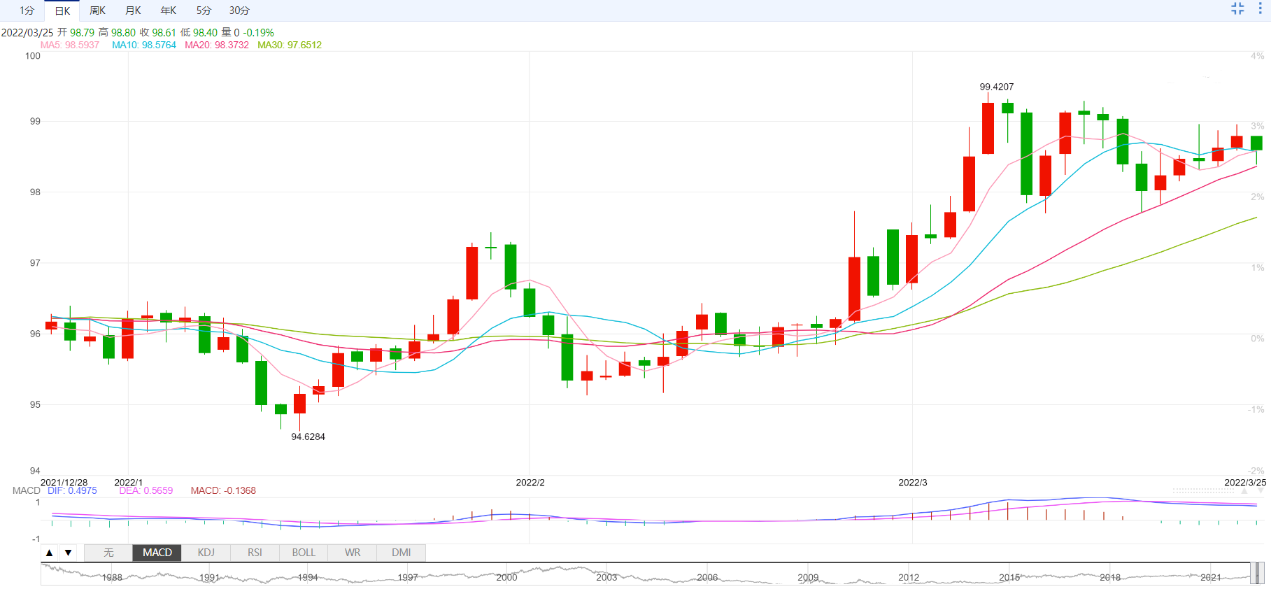 美元指数:截止北京时间20:00,美元指数小幅下跌,现报98.61,跌幅0.19%。纽市盘前,美元指数扭转了本周的部分上行势头,并在本周结束时重新回到98.40的区域。本周到目前为止,99.00区域对美元多头来说是一个相当棘手的阻力,这使得美元指数在周五重新出现了一些抛售倾向。与此相反,美元可能在短期内进一步回调至周低点97.70区域(3月17日)。该指数目前的看涨立场仍受到96.00区域的6个月线支撑,而位于日内在94.70的200日均线上方,美元的长期前景则被视为建设性的。