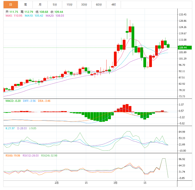 原油市场:截止北京时间20:00,美油大幅下跌,现报109.47美元/盎司,跌幅2.54%。纽市盘前,国际油价承压,因供应担忧有所缓解,欧盟国家在对俄罗斯实施石油禁运的问题上仍然存在分歧,而美国和盟国考虑从储备中释放更多石油以安抚市场。沙特阿拉伯和阿拉伯联合酋长国等主要OPEC成员国试图在西方和俄罗斯之间保持中立,而包括俄罗斯在内的OPEC+在其政策会议上避开了乌克兰问题。100移动平均线在200移动平均线之上,这表明阻力最小的路径是向上的,或者支撑位更有可能保持而不是突破。此外,移动平均线之间的差距正在扩大,反映了看涨势头的增强。