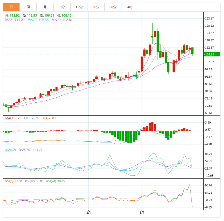 原油市场:截止北京时间20:00,美油大幅下跌,现报108.11美元/盎司,跌幅5.05%。纽市盘前,WTI原油价格的上升趋势可能会出现逆转,油价还没有跌破110美元/桶的领口,以确认下跌趋势。如果出现这种情况,原油价格可能会跌至与图表形成时相同的高度,或在6美元左右,可能会跌至每桶105美元左右或更低。到目前为止,OPEC+一直拒绝主要消费国加快产量增长的呼吁。2021年,俄罗斯原油出口量为470万桶/日,成为仅次于沙特阿拉伯的世界第二大出口国。一位美国消息人士上周五表示,拜登政府正在考虑再次从战略石油储备中释放石油,如果实施,规模可能会超过本月稍早释放的3000万桶。技术面,MACD死叉,KDJ死叉,短线偏向空头,因为油价是在130-93.53跌势的61.8%回撤位116.36附近受阻,如果跌破布林线下轨107.37附近支撑,则增加短线看空信号,油价后市可能会重新试探93.53附近支撑;短线的104.53附近和100关口附近,还分别存在一定的支撑。