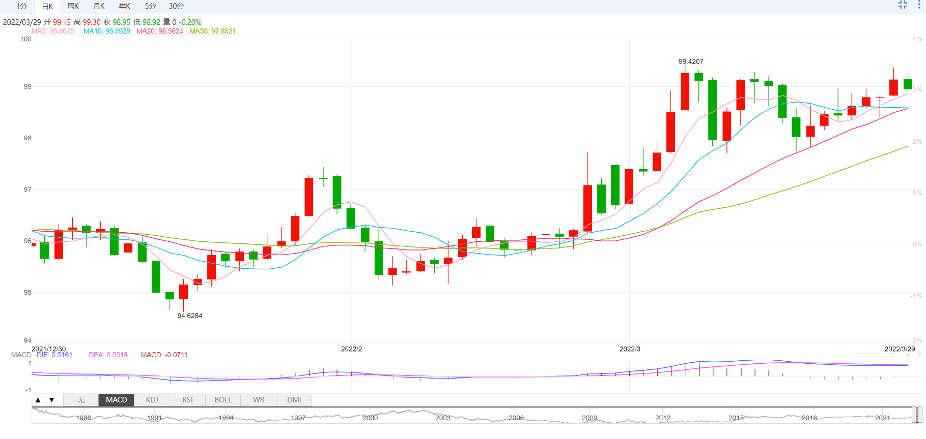 支撑位:98.53 98.24 98.09